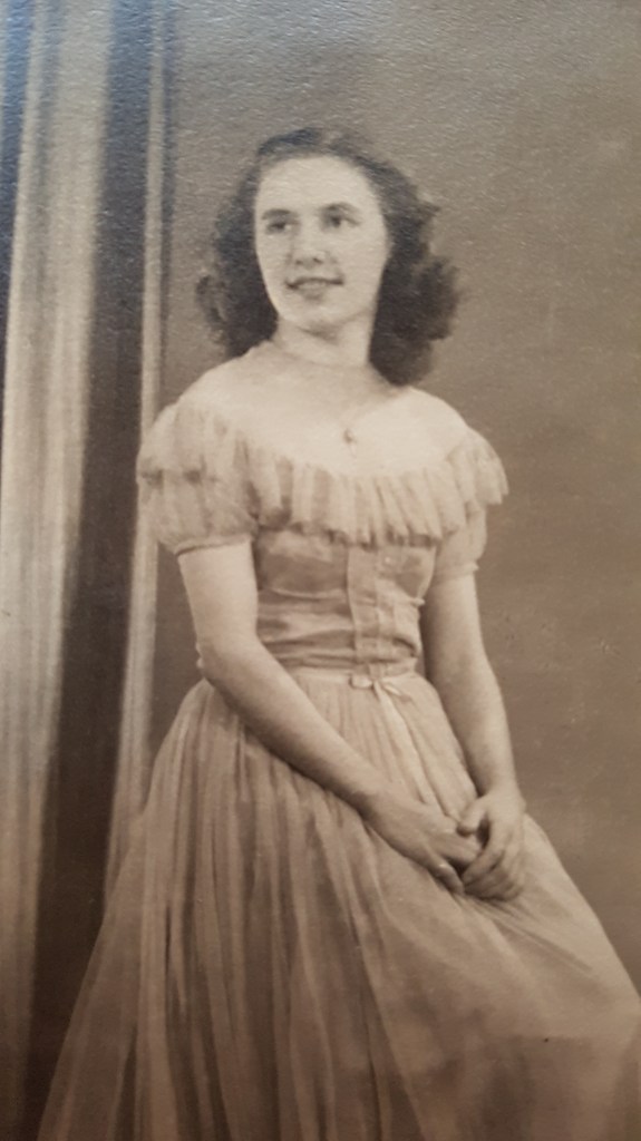 Mavis Bowers was born prematurely on 26th September 1929, at home in Bull Hill Stafford. She had a twin brother David who only lived for a short while. Mum was ‘smaller than a bag of sugar’ when she was born and for the first weeks of her life had to be washed in olive oil, dressed in doll’s clothes and a small drawer was used as a cot. Her birth wasn’t registered for two months.